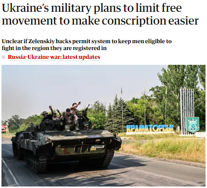 据英国《卫报》7月6日报道,乌克兰军方宣布计划引入一项制度,禁止符合征兵条件的男性自行外出旅行离开其登记地区。此举是为了让乌军方更容易征兵,但立即遭到强烈反对,包括乌总统泽连斯基。