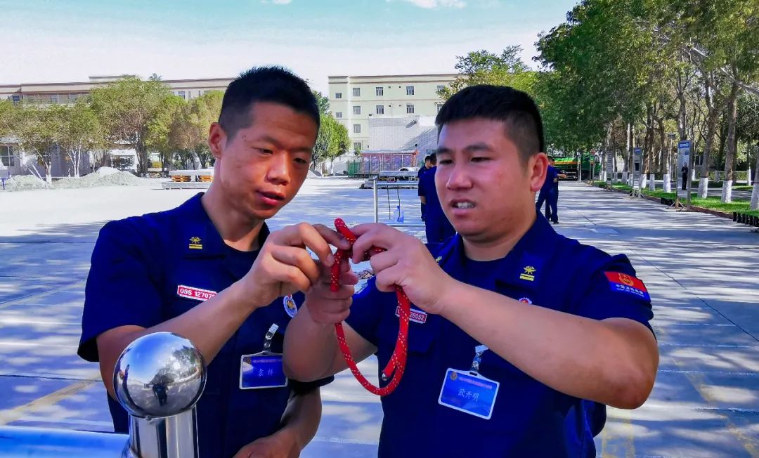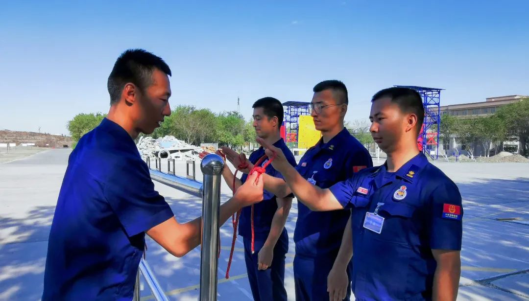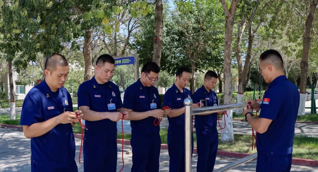 在训练过程中,教练员按照先理论、后技能的训练步骤,采取集中授课、现场讲解、示范教学、分组训练和评比竞赛等方式进行。重点围绕绳结制作、身体结索、物体结索等绳索救援基础技术进行学习组训。