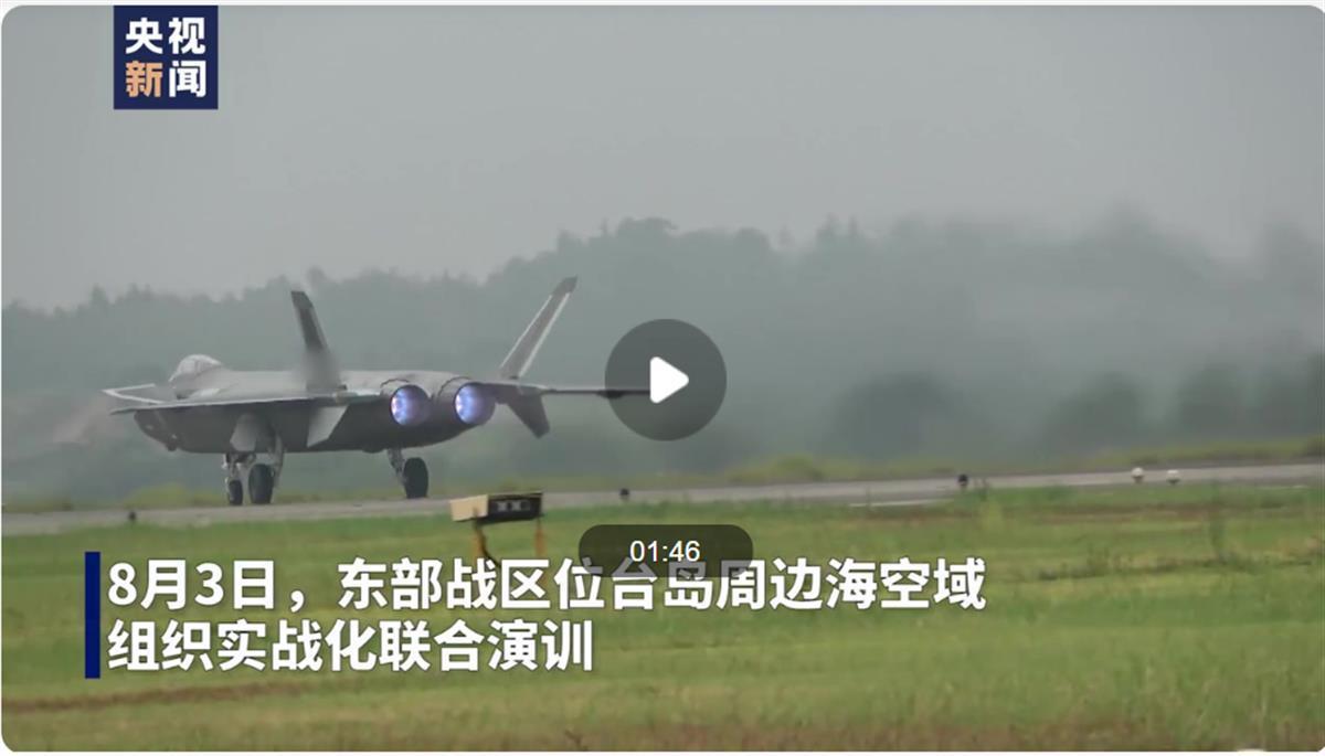 8月3日,中国人民解放军东部战区在台岛周边海空域组织实战化联合演训(图片来源:央视新闻)