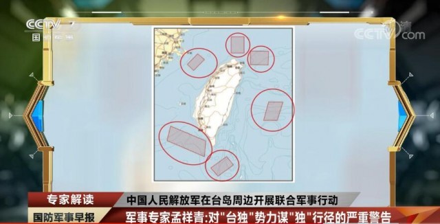 军事专家 孟祥青:这一次军事行动跟以往相比确实有很大的不同,总体上看,这次的行动是有力而且有效,特别是有一系列的重大突破。为什么这么讲?我们如果看看这次军事行动发布的那张图,(可以明显看出)是在六个区域展开一系列的联合军事行动。