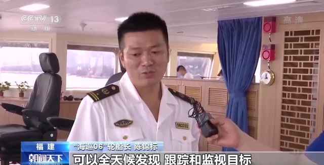 “海巡06”轮船长 陈锦标:可以全天候发现、跟踪和监视目标,白天最大的作业距离大于22公里,晚上大于16公里。