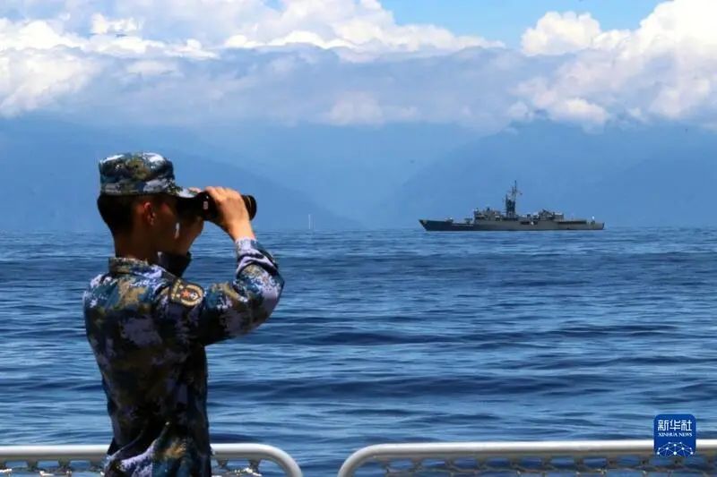 8月5日,中国人民解放军东部战区海军继续在台岛周边海域展开实战化训练。这是某舰官兵在瞭望观察。新华社发(林健 摄)