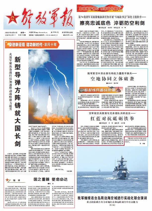刊于8月8日《解放军报》1版