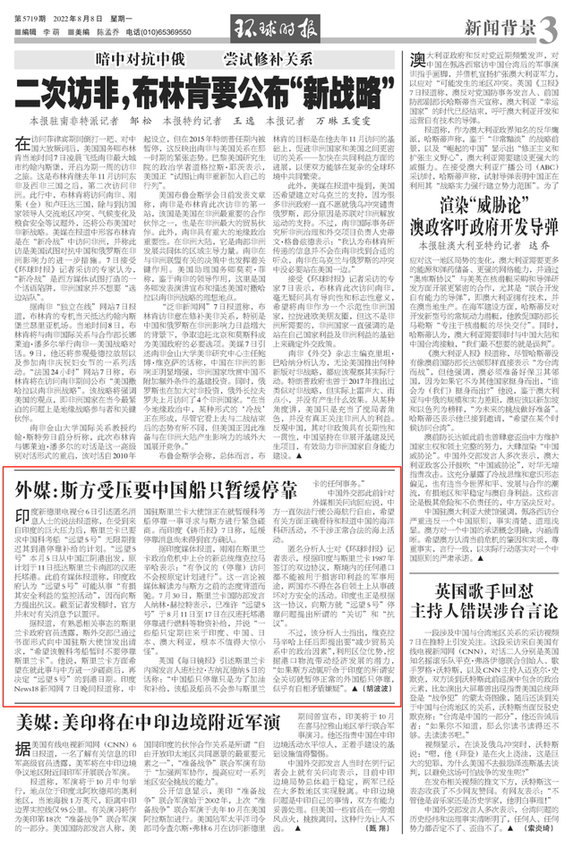 图为8月8日《环球时报》3版内容截图
