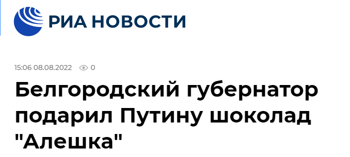 俄新社:(俄)别尔哥罗德州州长向普京赠送“阿廖什卡”巧克力