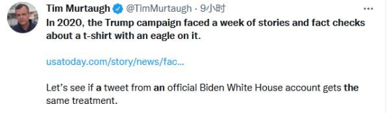 报道称,保守派人士质疑,贝茨在推特上发布的第二张图片中有鹰的形象,类似于20世纪30年代纳粹使用的标志。“2020年,特朗普竞选团队因为一件印有鹰的T恤,面临一周的(新闻)故事和事实核查,”前总统特朗普2020年竞选团队的公关总监蒂姆·默托在推特上写道,“让我们看看一个拜登政府的官方账号发布的推特是否得到了同样的待遇。”