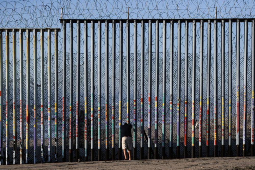 2019年1月10日,在墨西哥边境城市蒂华纳,一名男子在美墨边境墙边停留。图片来源:新华社