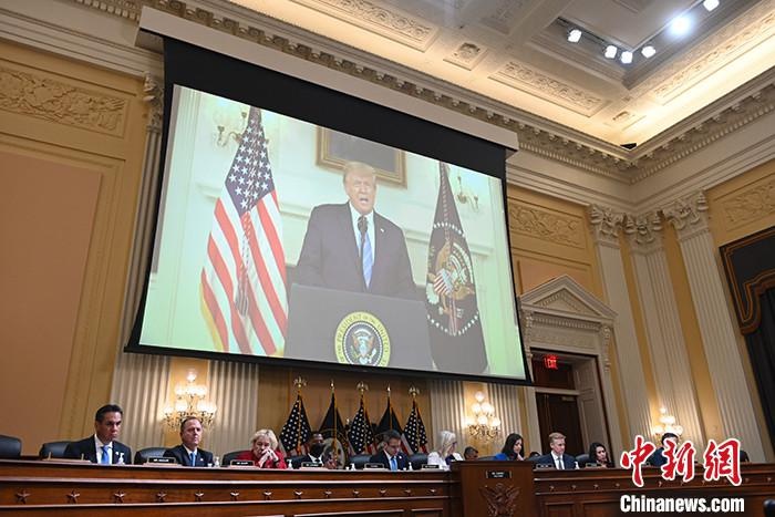资料图:当地时间7月21日晚,美国国会众议院特别委员会举行了针对国会山骚乱调查的第八场听证会,聚焦骚乱发生时美国前总统特朗普具体行动细节。 中新社记者 陈孟统 摄