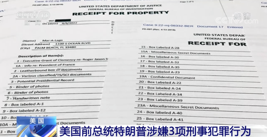 据此前报道,美国联邦调查局8日搜查特朗普的住所海湖庄园时,取走了多箱物品,其中包括11份机密文件,当中有一部分被标记为“绝密”文件。