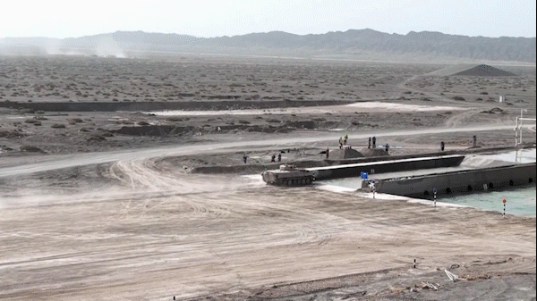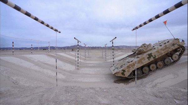 这个障碍主要考验驾驶员通过野外条件下复杂水域的能力,同时检验装备的涉水性能。步战车在驶向涉水场时要高速接近,通过时要快速换挡。