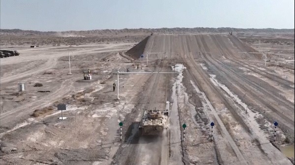起伏路段俗称搓板路,主要检验步战车行动部分的减震能力。该路段类似于公路上连续设置的多个减速带,考验步战车行动部分的可靠性。