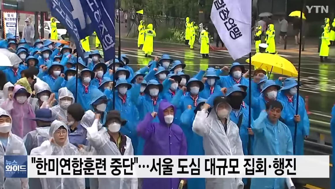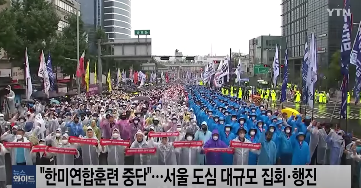 韩国数千民众冒雨举行反美集会 高喊“美国佬滚回家!”