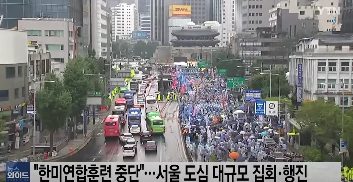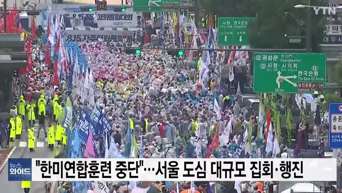 8月13日,韩国市民团体举行大规模集会。(韩国YTN电视台)