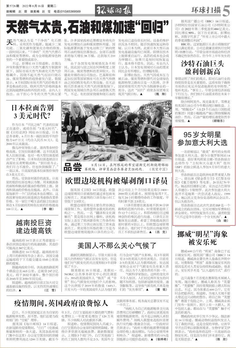 截图为《环球时报》8月16日5版文章