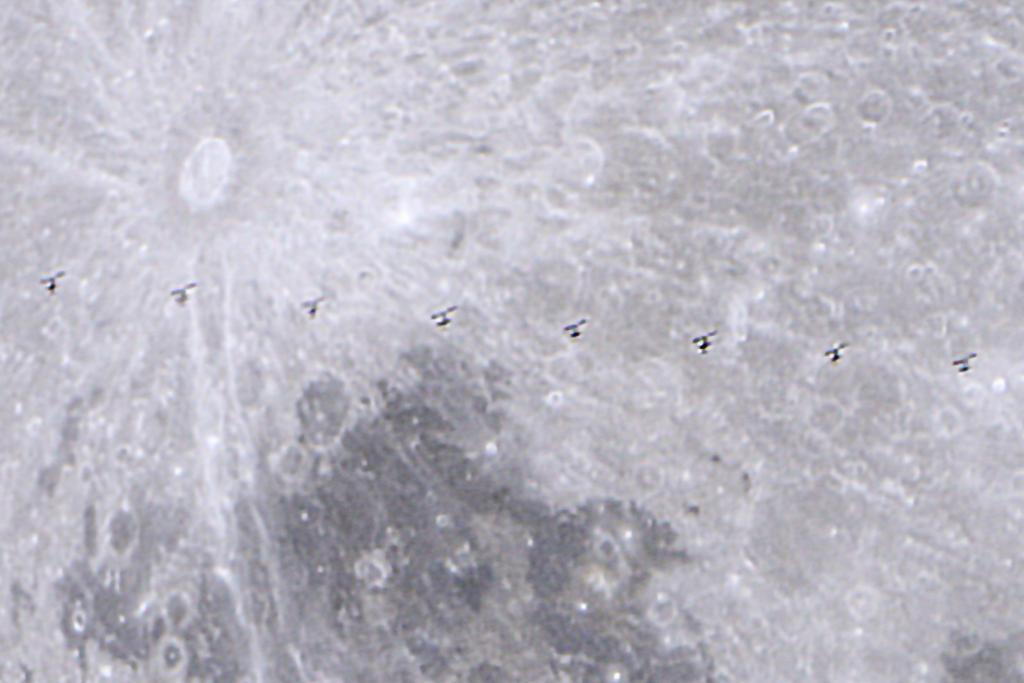 2022年8月14日4时许,天文爱好者在重庆市渝北区拍摄到中国空间站凌月的罕见画面,凌月时间仅0.72秒。