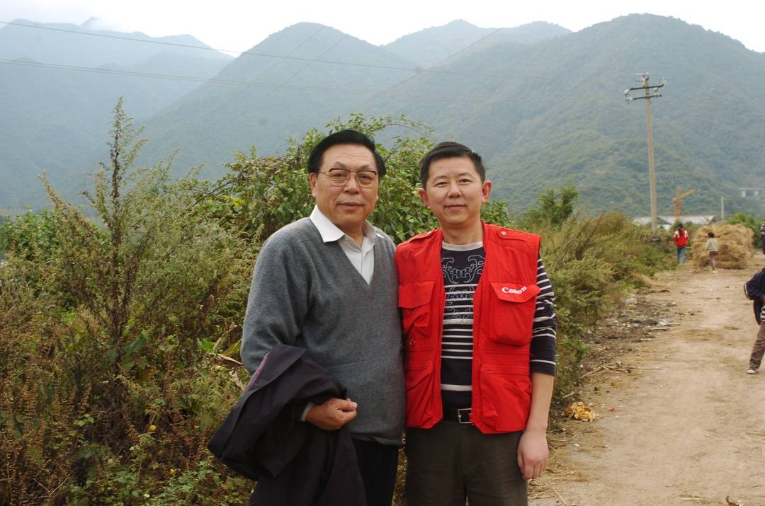 2007年10月24日,“嫦娥一号”月球探测卫星在西昌卫星发射中心发射升空。这是我国第一颗绕月人造卫星。发射前夕,欧阳自远院士接受记者独家采访,与记者何万敏合影留念。何万敏(右)图片由何万敏提供