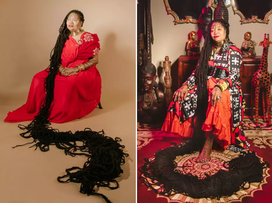 现今60岁的Asha从几十年前开始蓄发,在2009年第一次获得全球脏辫保持记录。现在她在社交媒体上称,自己的头发已经长到了33.5米,总重量达19公斤。