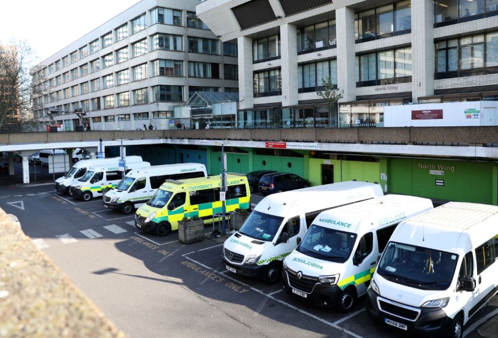 3月27日,救护车停在英国伦敦一家医院内。新华社记者李颖摄