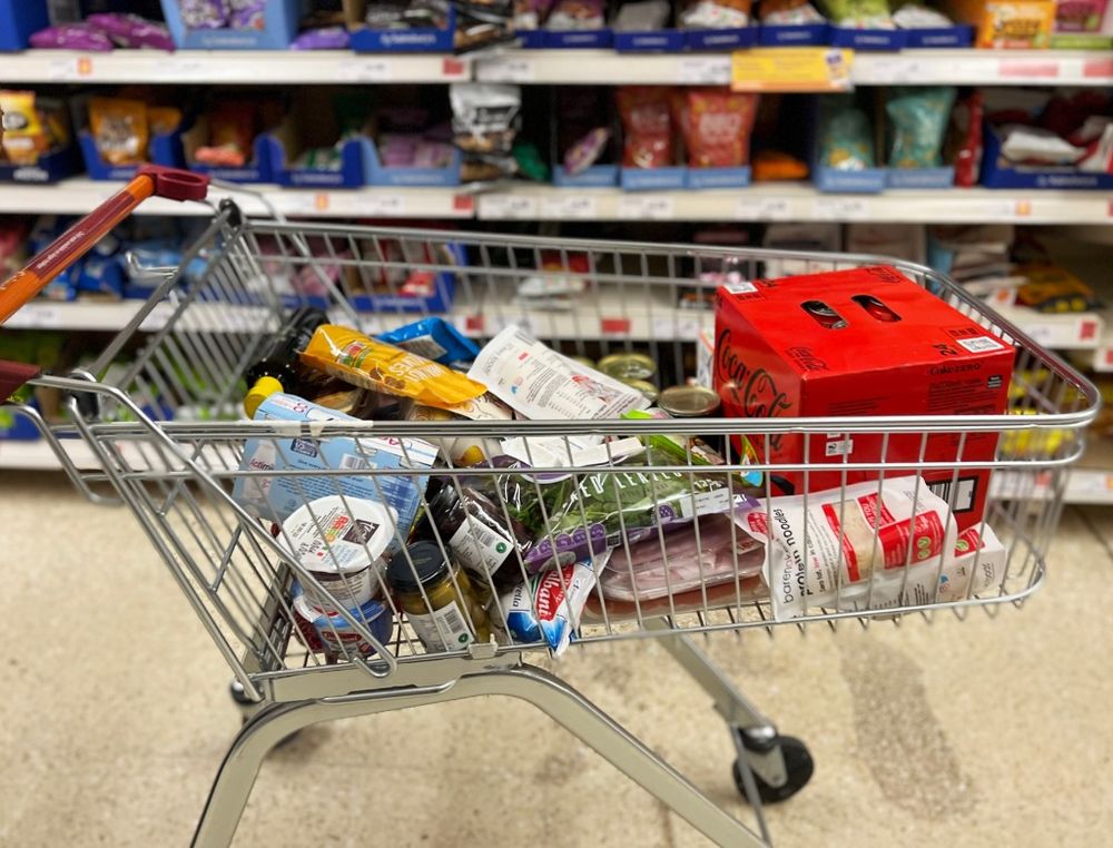 这是5月5日在英国伦敦一家超市内拍摄的购物车。新华社记者李颖摄
