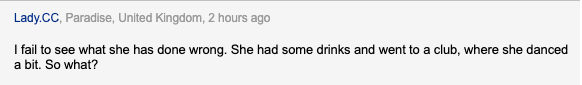 我看不出她做错了什么,她就是喝了点酒,去了夜店,然后跳了会儿舞。这怎么了?