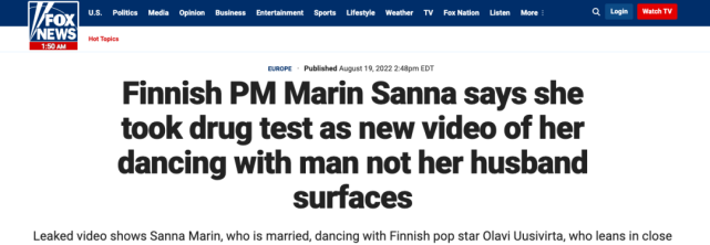此外据报道,芬兰总理马林表示,她已经接受药检,以检验其是否吸毒。