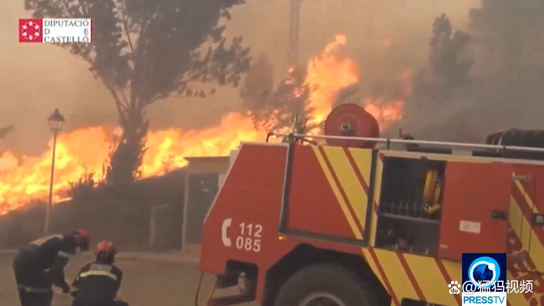 西班牙消防员正在和瓦伦西亚地区的山火搏斗(图片来源:法新社)