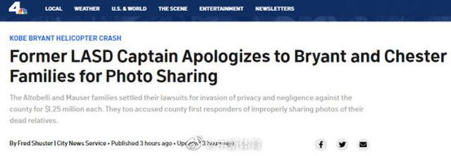 根据报道,科比坠机事故发生几天后,加利福尼亚州的一名调酒师无意中听到洛杉矶县实习警员向她“吹嘘坠机现场的情况”,这名实习警员还拿出手机,分享了坠机的现场照片给她看。2020年3月2日,洛杉矶县警长亚历克斯宣布,至少有8名警员拍摄或分享了坠机现场的照片,他已下令让警员们将这些照片删除。