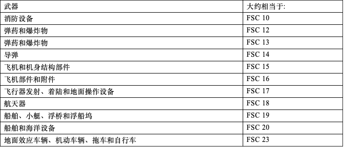 武器;消防设备;弹药和爆炸物;导弹;飞机和机身结构部件;飞机部件和附件;飞行器发射、着陆和地面操作设备;船舶、小艇、浮桥和浮船坞;船舶和海洋设备;地面效应车辆、机动车辆、拖车和自行车。