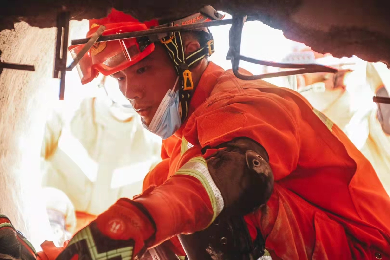 这是该支队改革转制后的第四次比武,看着一个个熟悉的参赛对手,内心波动之余,郑思林想起了自己的比武历程。记得2020年,支队组织训练尖子比武,入队才一年的郑思林便萌生了拼一把的想法,踊跃报名。他知道要想与老队员、老班长同台竞技,唯有以最短的时间学会新课目并快速强化。识图用图、五公里负重、灭火装备操作综合演练……有几次训练时间太久,他吃饭拿筷子手都发抖,双腿失去知觉,但仍然坚持着。功夫不负有心人,支队比武如期而至。在第一次参加比武就以优异成绩冲进负重五公里前五名,也给大家留下来了深刻印象。