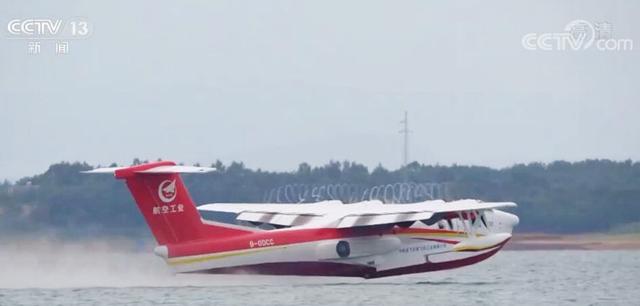 在水上首飞过程中,AG600灭火型飞机从荆门漳河机场滑行入水,随即从水面腾空而起,在空中平稳飞行18分钟,完成既定一系列试飞科目后顺利降落漳河水库,飞机状态良好,操纵系统正常,各系统运行稳定。