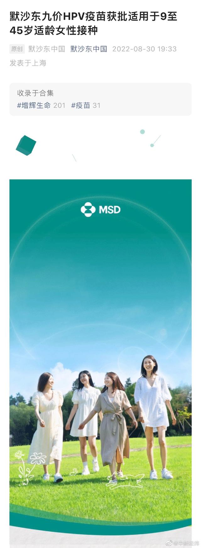 据默沙东官方公众号消息,2022年8月30日,默沙东宣布,其九价人乳头瘤病毒疫苗(酿酒酵母)(下称“九价HPV疫苗”)的新适应证已获得中国国家药品监督管理局批准,此次获批标志着默沙东九价HPV疫苗的适用人群也已拓展至9-45岁适龄女性。
