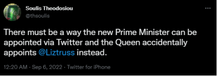 报道称,对于这一乌龙事件,即使不少网友注意到了这位仿冒特拉斯的网友特拉塞尔是“高仿号”,他们还是认为很有意思,表达了对她的支持。一位网友表示:“肯定有种通过推特任命(英国)新首相的方法,这样女王(也可能)不小心任命了特拉塞尔。”↓