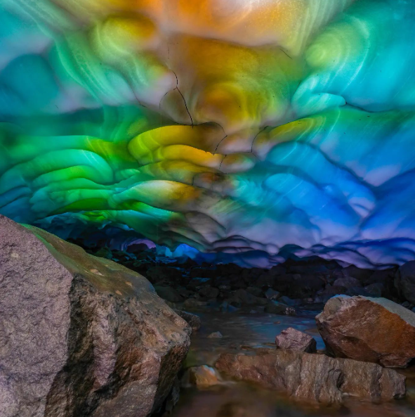 摄影师拍摄到的“彩虹冰洞”(社交媒体)