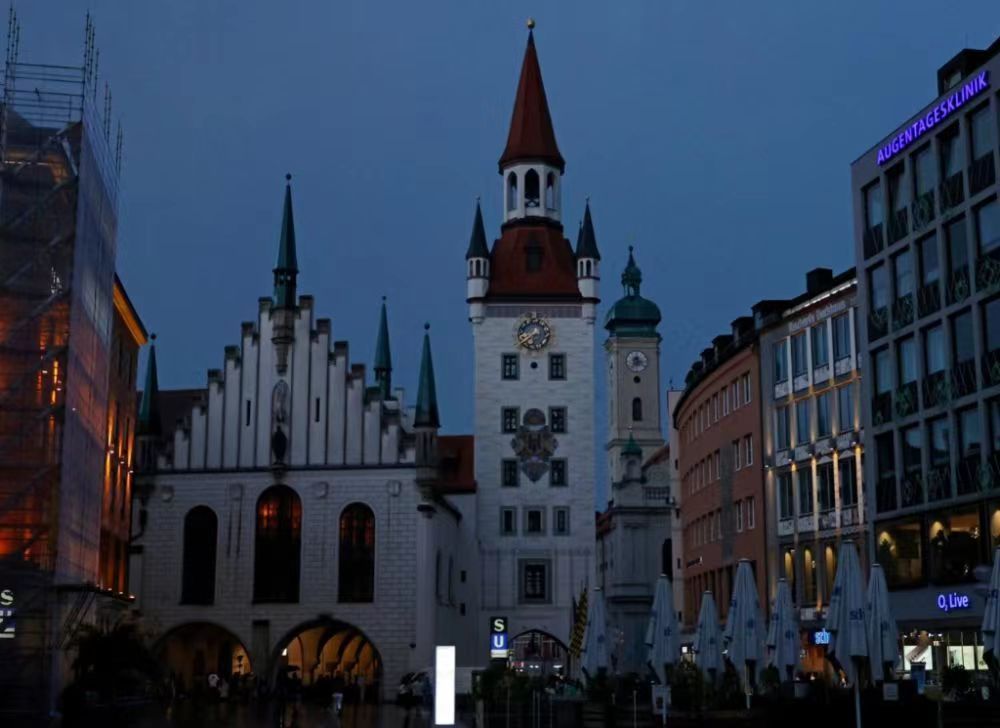 7月30日,德国慕尼黑老市政厅。为应对能源紧张,德国多地采取措施节约用电。图源:新华社