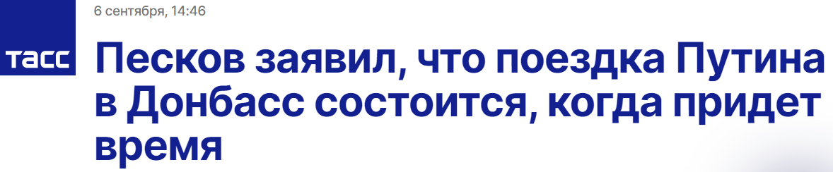 【环球网快讯】综合塔斯社、俄新社等多家俄罗斯媒体6日最新报道,俄总统新闻秘书、克宫发言人佩斯科夫称,“当时机到来时”,俄罗斯总统普京会前往顿巴斯地区。