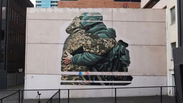 据英国《每日邮报》5日报道,澳大利亚墨尔本一名街头艺术家因为一幅呼吁和平的壁画作品而遭到抨击,该壁画描绘了一名乌克兰士兵和一名俄罗斯士兵紧紧拥抱的画面。