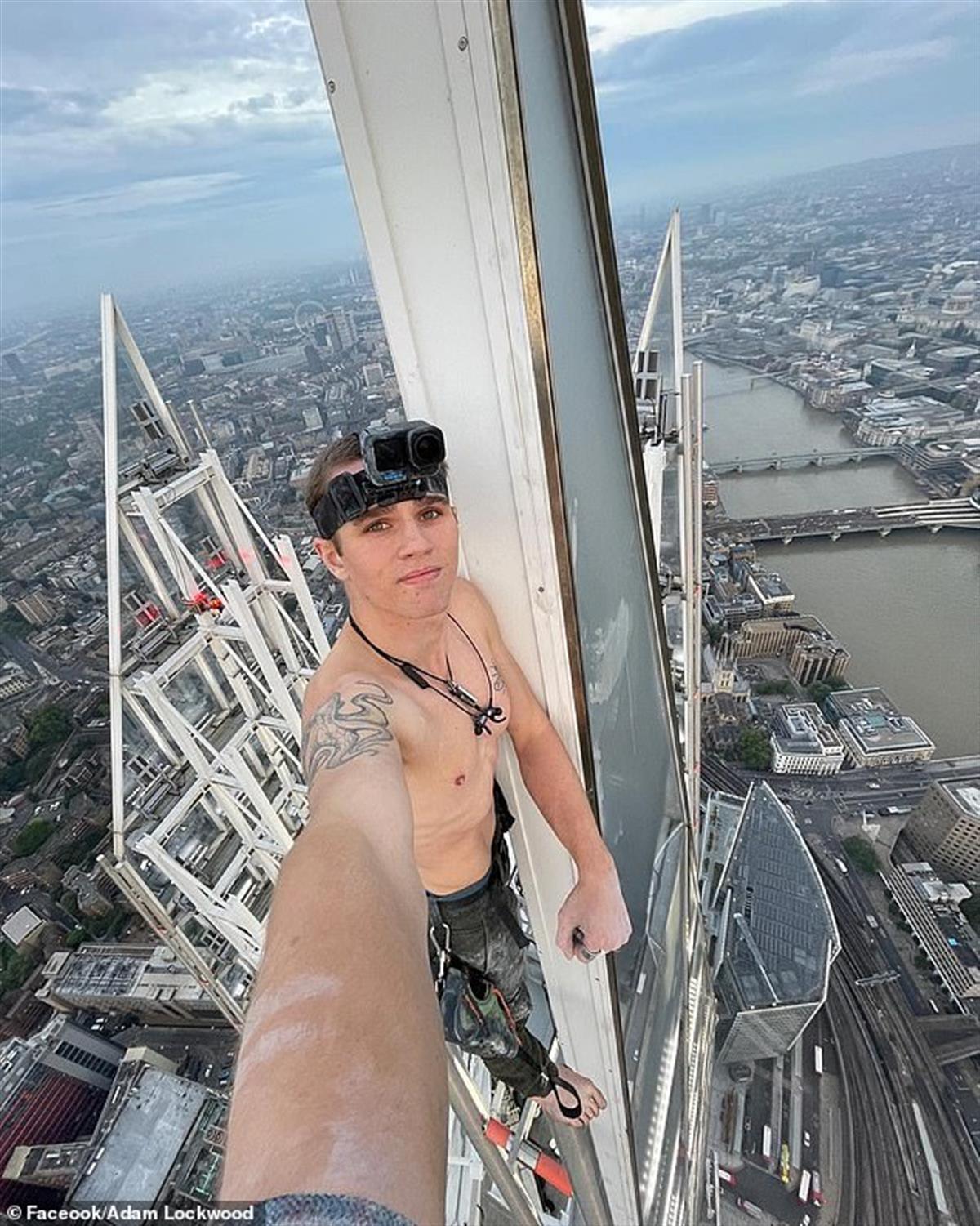 洛克伍德爬上大楼后,在楼顶自拍。从他分享到社交媒体的自拍照中看到,他赤裸上身、没穿鞋,眺望伦敦天际线。他带着头戴式摄像头,没有使用任何安全措施,只用自身力量防止摔倒。