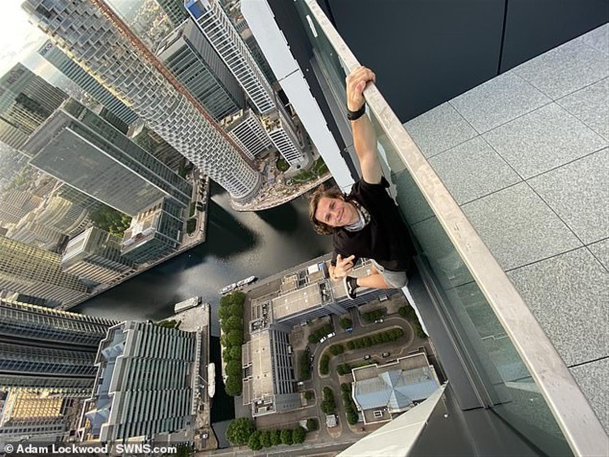 洛克伍德爬到英国最高建筑上自拍 (图片来源:每日邮报)
