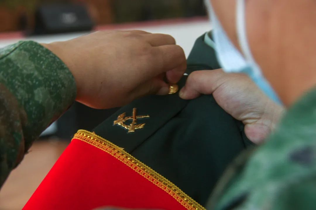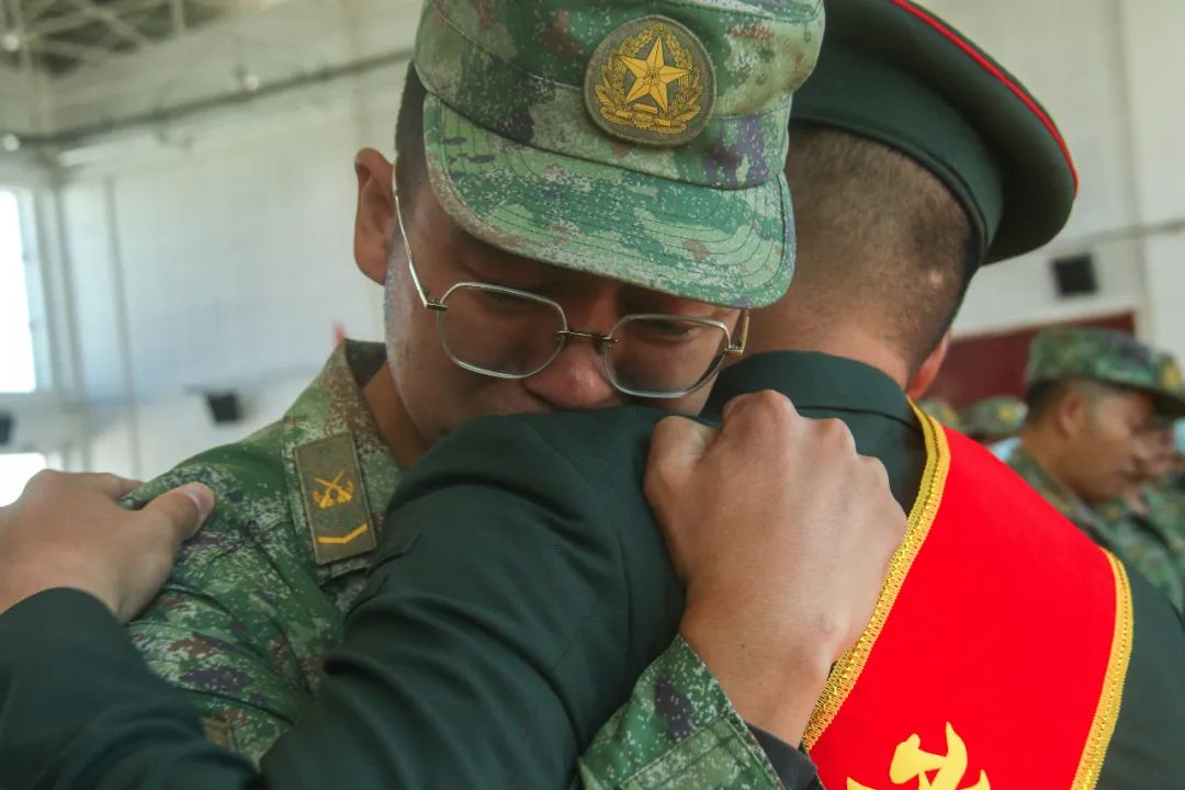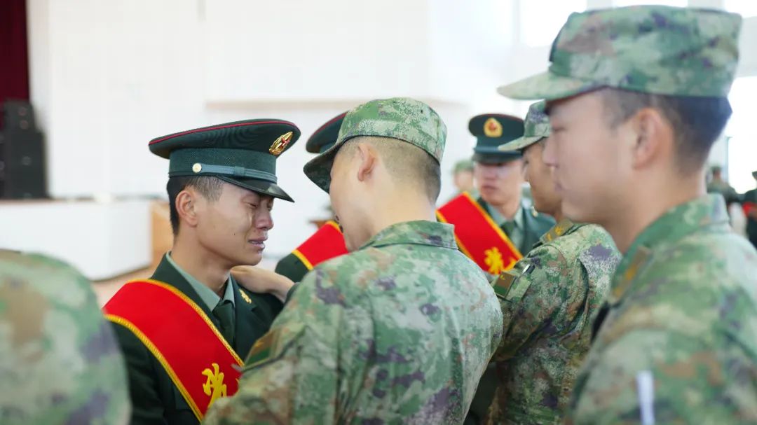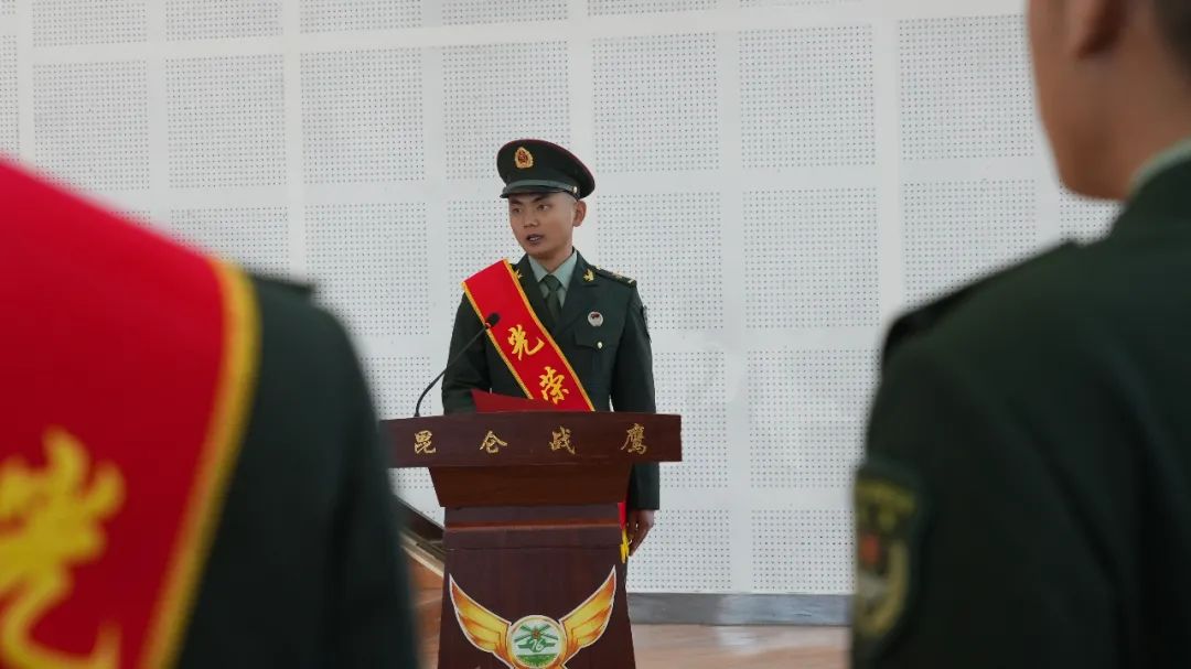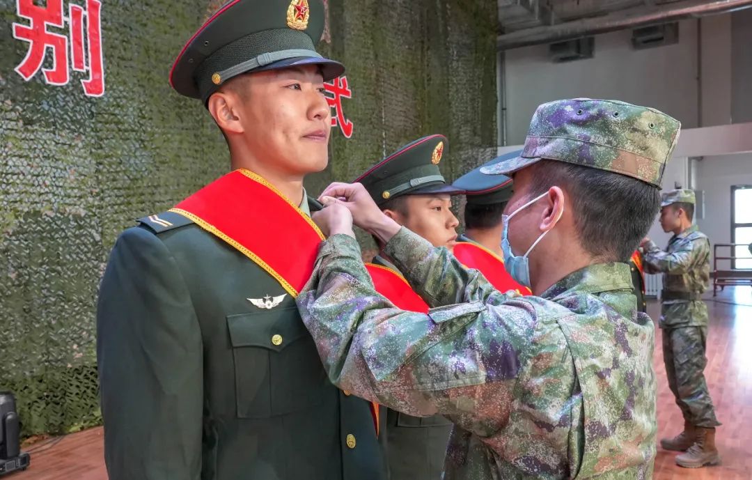 中士孙浩鹏代表全体退役老兵发言:“几年前,我们怀着报国从军的理想走进火热军营,如今即将离开,走向祖国的四面八方。我们会永远记得我们曾是一名军人,若有战,召必回!”