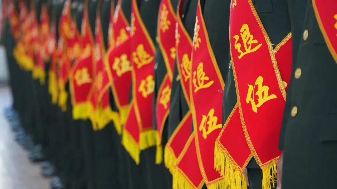 “送军旗,向军旗——敬礼!”3名仪仗兵身姿挺拔,高举军旗缓缓走过,百余名退役士兵身披光荣退伍绶带,整齐列队,再向军旗庄严敬礼,向军营告别,为军旅生涯画上圆满的句号。