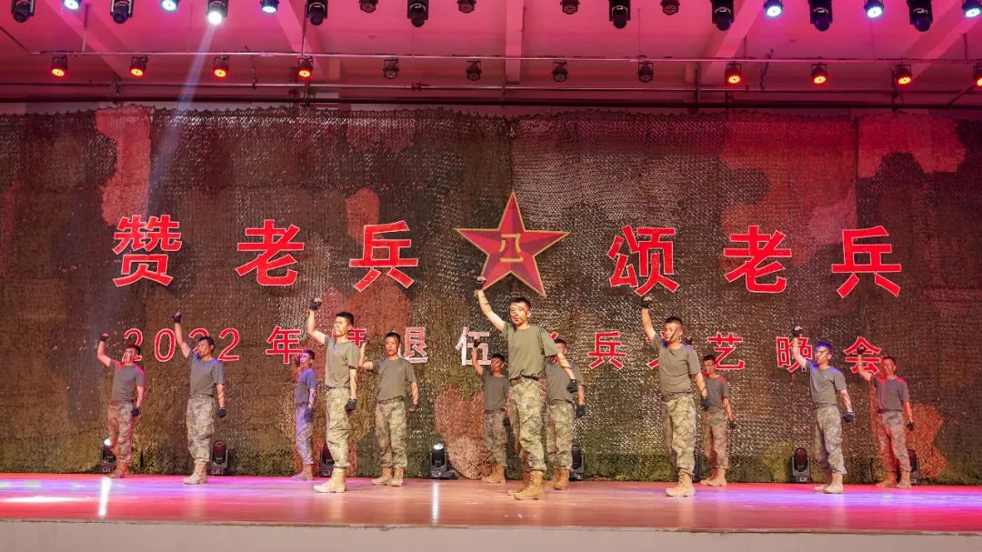 随后,“赞老兵·颂老兵”文艺晚会在开场舞《战斗宣言》中拉开帷幕,官兵们用一个个自编自演的精彩节目,为即将退伍的老兵送上最真挚的祝福。
