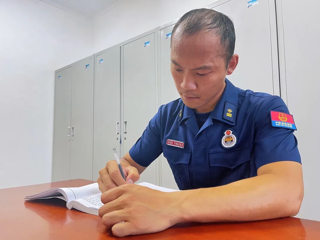 随着森林消防队伍职能不断拓展,森林消防队伍朝着“全灾种、大应急”目标要求不断提升。地震、山岳、水域救援等综合救援训练,是森林消防队伍新增的训练科目。对学历不高的石俊秋来说,如何学好教学理论知识成为摆在他面前的难题。改革转制后,总队和支队相继开展了各类综合救援培训。石俊秋主动申请参加学习,先后两次参加总队组织的应急救援骨干培训。在培训过程中,他深刻地感受到,在一个从未接触过的全新领域,要想练就过硬本领,绝非短时间能够速成。培训结束后,石俊秋虚心请教教员、刻苦钻研教案,积极创新方法抓训练,探讨交流找问题、想答案。深夜的学习室有他挑灯夜战的身影,训练场上有他传授方法、示范动作的背影。今年 6 月,总队成立水域救援技术培训班,开展了IRB (充气救生艇)救援理论知识授课,设置了艇操、挂机认知、舟艇构造与组装、挂机故障排除训练等理论性极强的专业科目。石俊秋作为中队长助理,成为培训班的一员。在整个培训期间,石俊秋随身携带的笔记本上密密麻麻地记录了救援装备各项晦涩难懂的数据,反复实操成为他的常态。他的这股拼劲儿令许多人不解:“都十几年的老消防员了,为什么还这么拼?”石俊秋却说:“现在整个队伍都在改革的浪潮中转型升级,像我这种老家伙,只有步履不停才能跟上队伍发展步伐。”