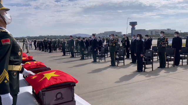 在场人士向烈士遗骸三鞠躬表示哀悼
