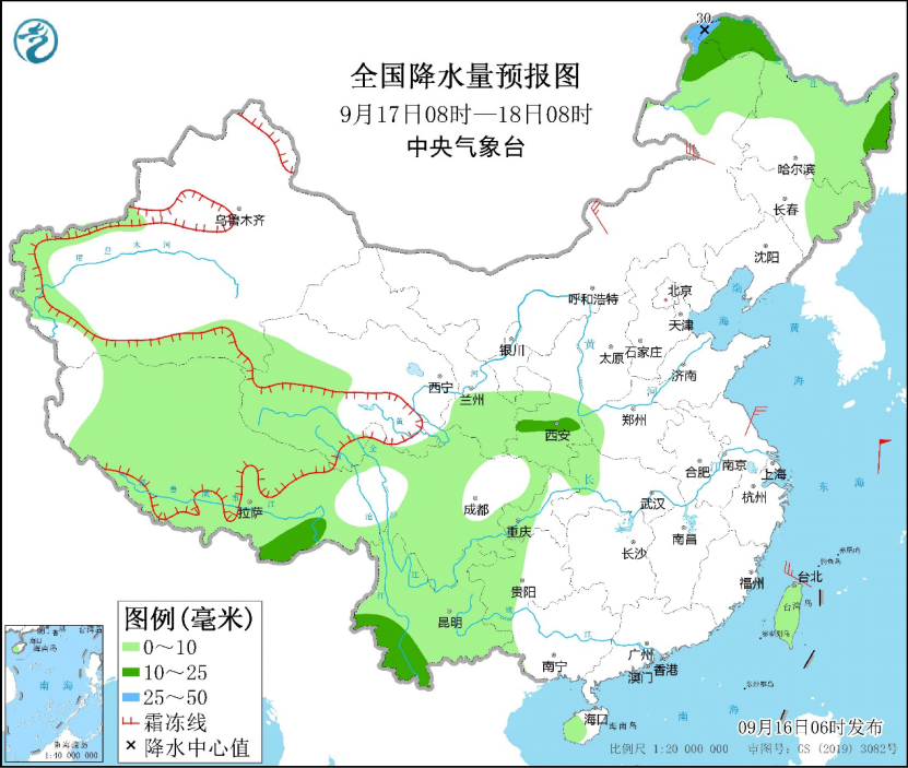 9月17日08时至18日08时,内蒙古东北部、黑龙江西北部和东部、西藏东南部、陕西南部、云南西南部等地部分地区中雨,局地有大雨(25~30毫米)。内蒙古东北部和中部等地部分地区有4~6级风。(中国气象网)
