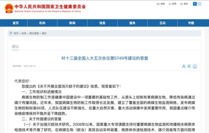近日,一则全国人大代表提出全面消灭蚊子的建议得到了国家卫健委的答复。很快,各种争议也随之而来。有人认为,蚊子是自然界和生态系统的一员,存在有其合理性;也有人认为,蚊子是害虫,是疾病传播的元凶之一,应该“除之而后快”。究竟哪种说法有科学依据?清华大学医学院微生物与传染病学教授程功告诉中新网,真正会对人类健康造成威胁的是病媒蚊,阻断其疾病传播的研究已有所进展。(中新网)