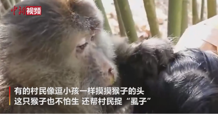 近日,云南昭通市民政村一村民正在地里摘花生,发现身后有只猴子,正偷拿筐里的花生,被村民发现后,这只猴子转身跑进了树林。村民担心它饿着,还纷纷从家里拿来果品投食。有的村民像逗小孩一样摸摸猴子的头,这只猴子也不怕生,还帮村民捉“虱子”。经鉴定,这是一只藏酋猴,为国家二级重点保护野生动物,是中国猕猴属中最大的一种。(中新网)