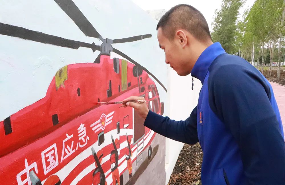 为使营区文化墙达到“款式新颖、内容丰富、排版合理”的效果,大队专门成立绘画领导小组,从实地测量、确定主题、设计方案、筛选图稿、购置工具、人员选择到具体实施几经打磨,几易其稿,绘画小组成员们亲力亲为,用心用情,每个环节无不细细考量,笔笔雕琢,最终得以精美呈现。100余副绘画全部通过指战员手绘形式完成,是大队指战员集体智慧的结晶。