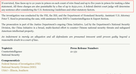 从去年美国司法部对肖明庆提起“诉讼”的文件来看,这位出生于广州、现年60岁的美籍华裔科学家,是因为2019年左右与广东省自然科学基金会和深圳大学的合作,而遭到美司法部迫害的。美国司法部当时宣称,肖明庆在与这两家中国科研机构合作时,没有及时和他在美国的单位——即美国南伊利诺伊大学汇报,然后就因此以“欺诈罪”起诉他,还威胁说他将面临最高20年的刑期和25万美元的罚金。