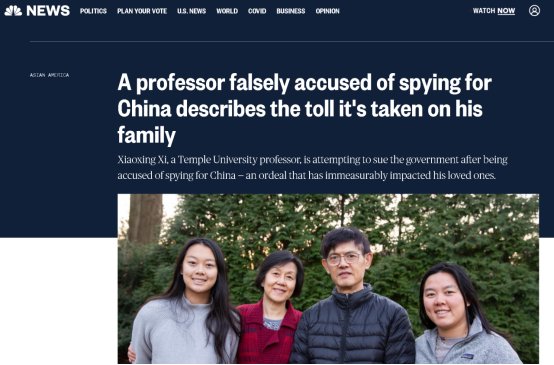 而且,即使美国的法庭能还这些科学家一个“公道”,也根本弥补不了他们精神上遭受的创伤和因为被迫害而失去的时光——这不,据美国全国广播公司网站的报道,早在2015年时就遭到美国司法部迫害的美国著名华裔科学家、世界知名超导专家郗小星,为了追究曾经迫害他和伤害他家庭的人的责任,仍在辛苦维权中……