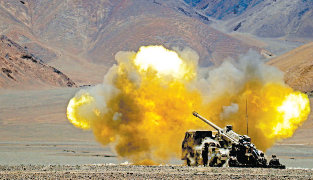 “放!”指挥员下达射击口令。阵阵轰鸣中,炮弹精准命中目标。随后,各炮班完成对残存目标的打击。